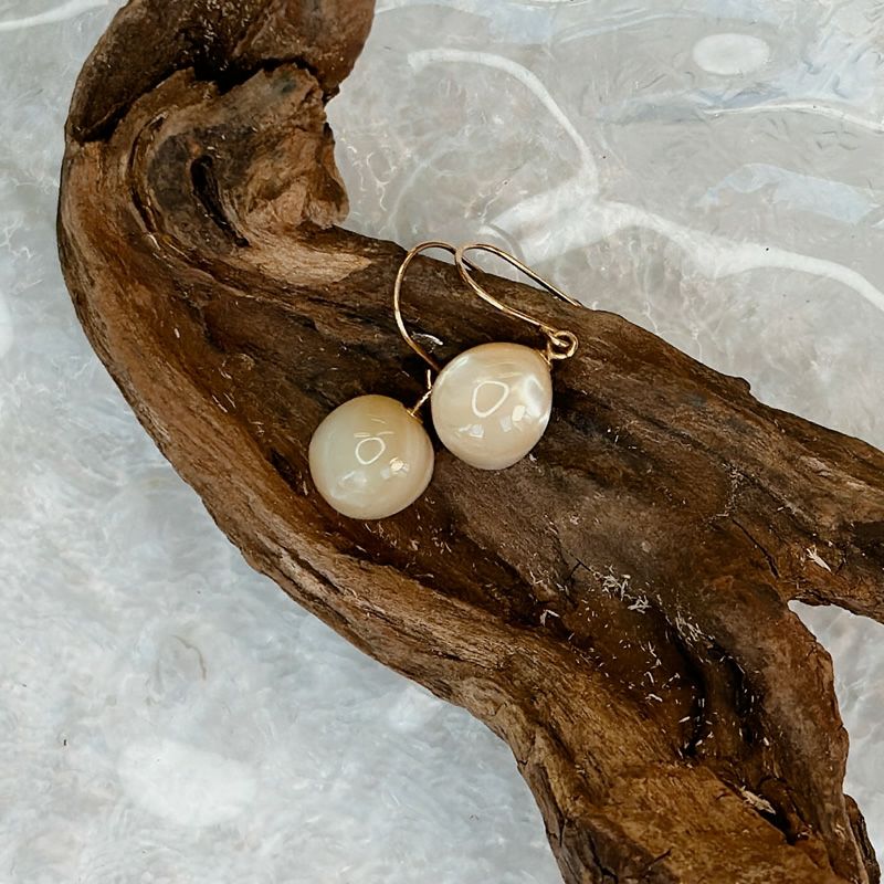 コロンとしたシンプルな1粒ピアスですが、真珠層を使用しているので立体的な輝きがあり、存在感を放っています。